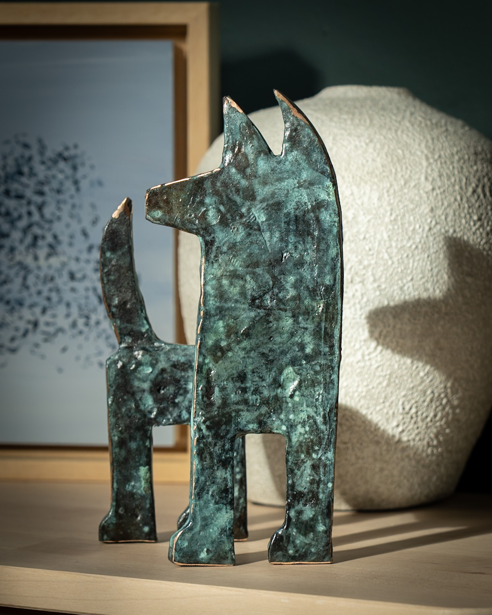 Seamus Connolly is one of Ireland’s leading bronze portrait sculptors, best known for his highly acclaimed life-size portraits. Seamus runs a bronze foundry in West Clare and rather uniquely, takes all his work from inception in clay, through to being finally cast in bronze, right here in his own workshop – all of which is intrinsically linked to the Gallery here. Seamus is equally sought after for his artistic and stylized bronze pieces, which we stock here in the Gallery. He has a fantastic reputation for these individual, quirky sculptures, most of which are inspired by animals and nature and sit particularly well in people’s homes.