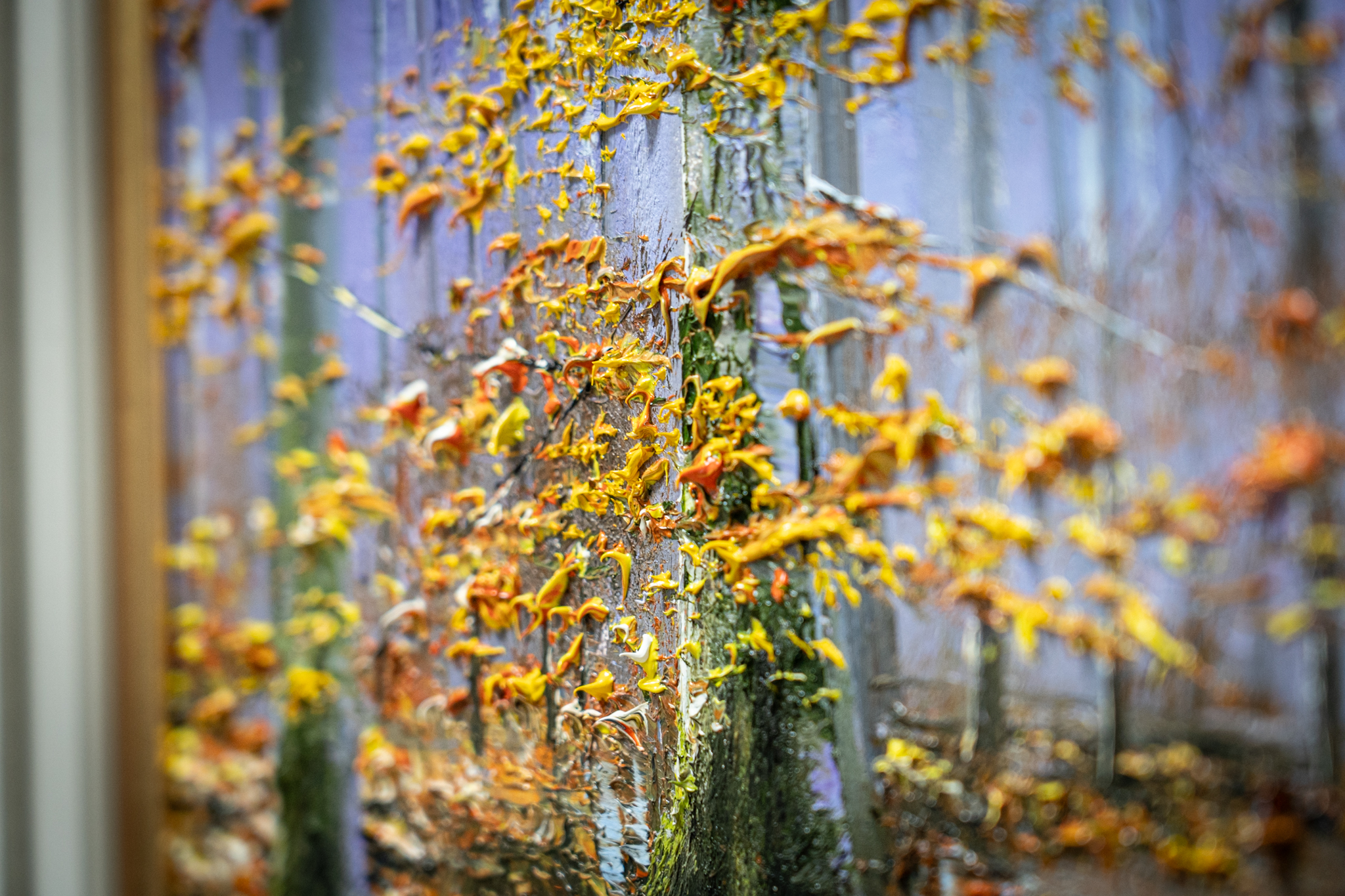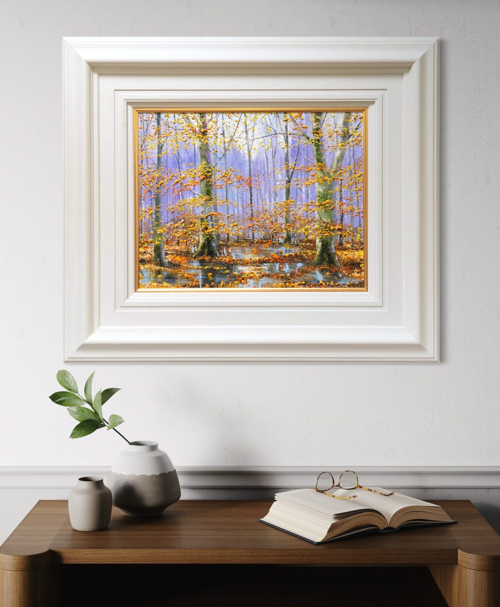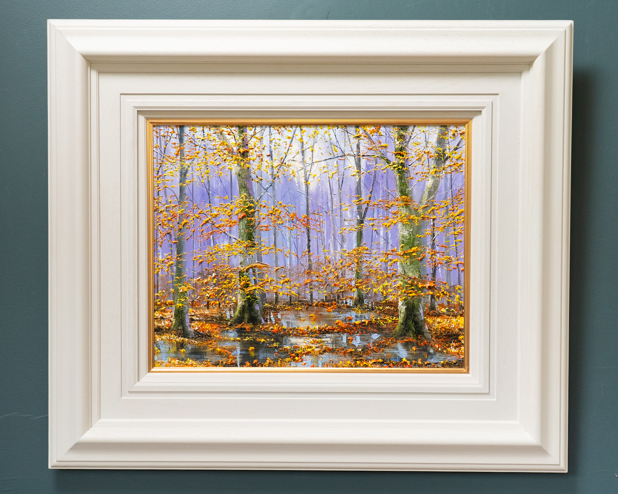 The beautiful, thick layers of oil, that form a part of the incredible journey of a Mark Eldred original, are raised and prominent as each and every element in the painting gets the same attention and the same love from this awesome artist. ‘Autumn Reflections’ is another striking Eldred original that quite literally takes your breath away. Majestically framed, this is a powerful piece that makes for a very striking addition to any space. This impressive painting, with its gorgeous and rich colour palette, really stands out. Like every Mark Eldred piece we have ever been lucky enough to be around, you could almost walk right into it, its so beautifully realistic, with its fabulous detail and incredible handling of colour.