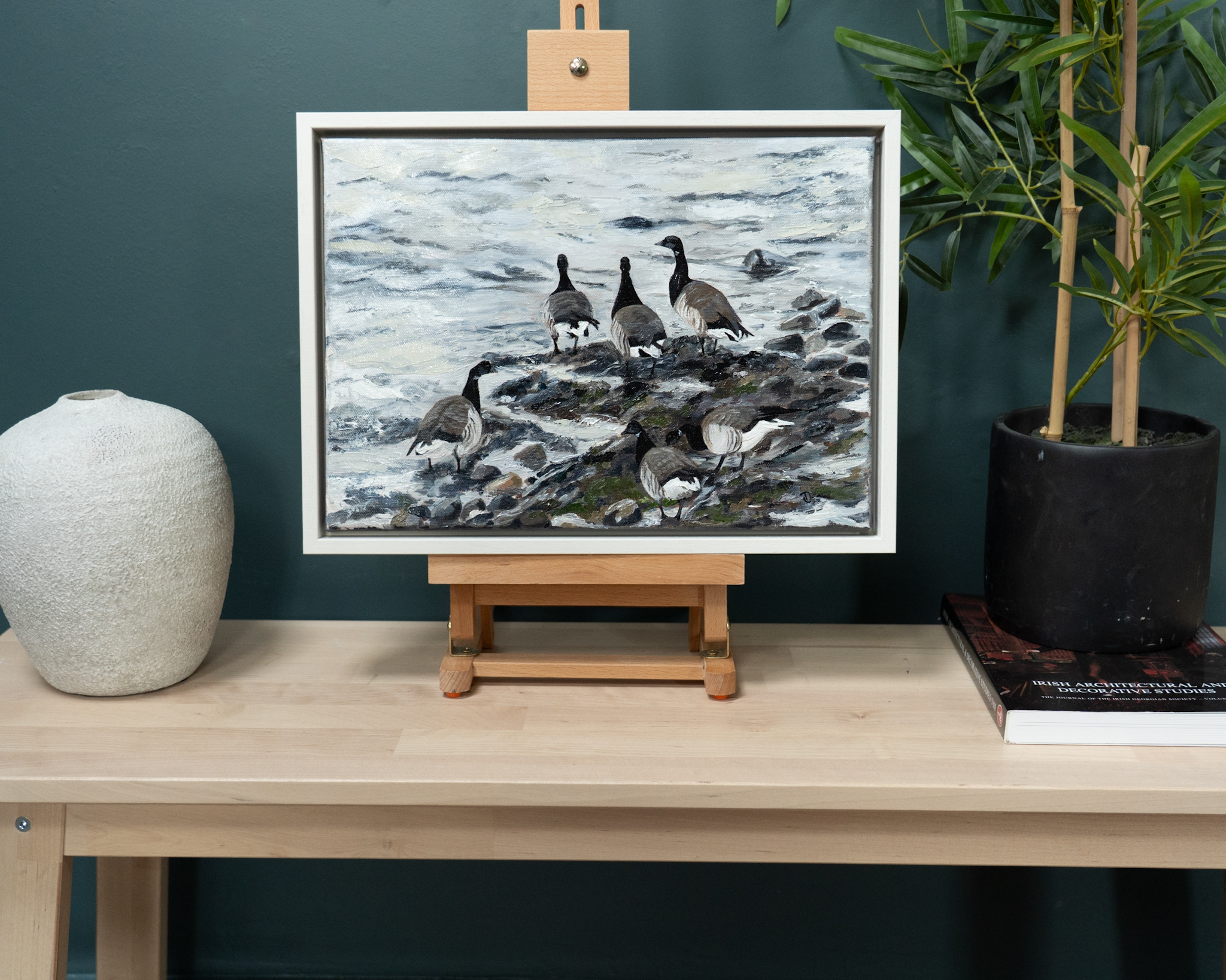 Collectable work – watercolour original – Irish art – Cappa – West Clare – Brent Geese – Feeding on the Rocks