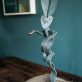 This rather quirky hare, sculpted and cast into bronze, with a dark layered blue and grey patina, makes for a very impactful and fun piece of art to own. Standing rather tall at approximately 25″, he really is a talking point piece. Sculpted by Seamus Connolly here in his own studios and bronze foundry in Kilbaha – one of his signature stylized bronze animals. Connolly is busy creating life-size commemorative statues for various committees around the country, so these little stylized pieces are few and far between right now!