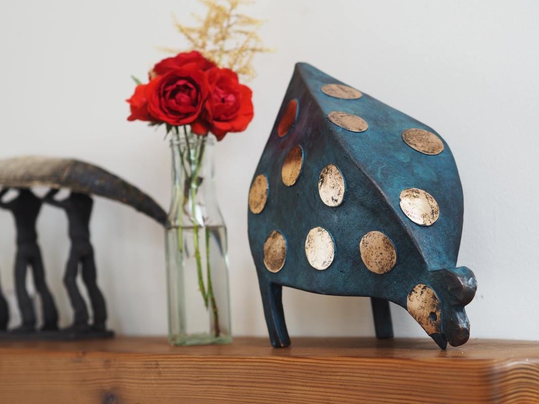 • Stylized Bronze Hen – Green Patina with Shiny Bronze Dots