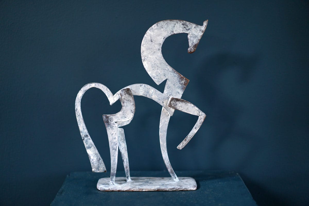 Fans and collectors of Seamus Connolly’s stylised bronze horses, will just simply adore this latest addition to the range; smaller in size than some of his previous horses, this piece comes in at a sweet and perfect 11 inches tall. Patinated in a light grey but with varying shades, layered for depth of colour, this piece has a gorgeous, almost industrial feel to it. The signature curved neck, rounded tail and raised front leg, just seals the deal on the elegance and sophistication of this original piece of bronze. A wonderful collectors pieces, this will sit just perfectly on any sideboard, mantle or office shelf perhaps? Also a potentially great gift for art and horse lovers!