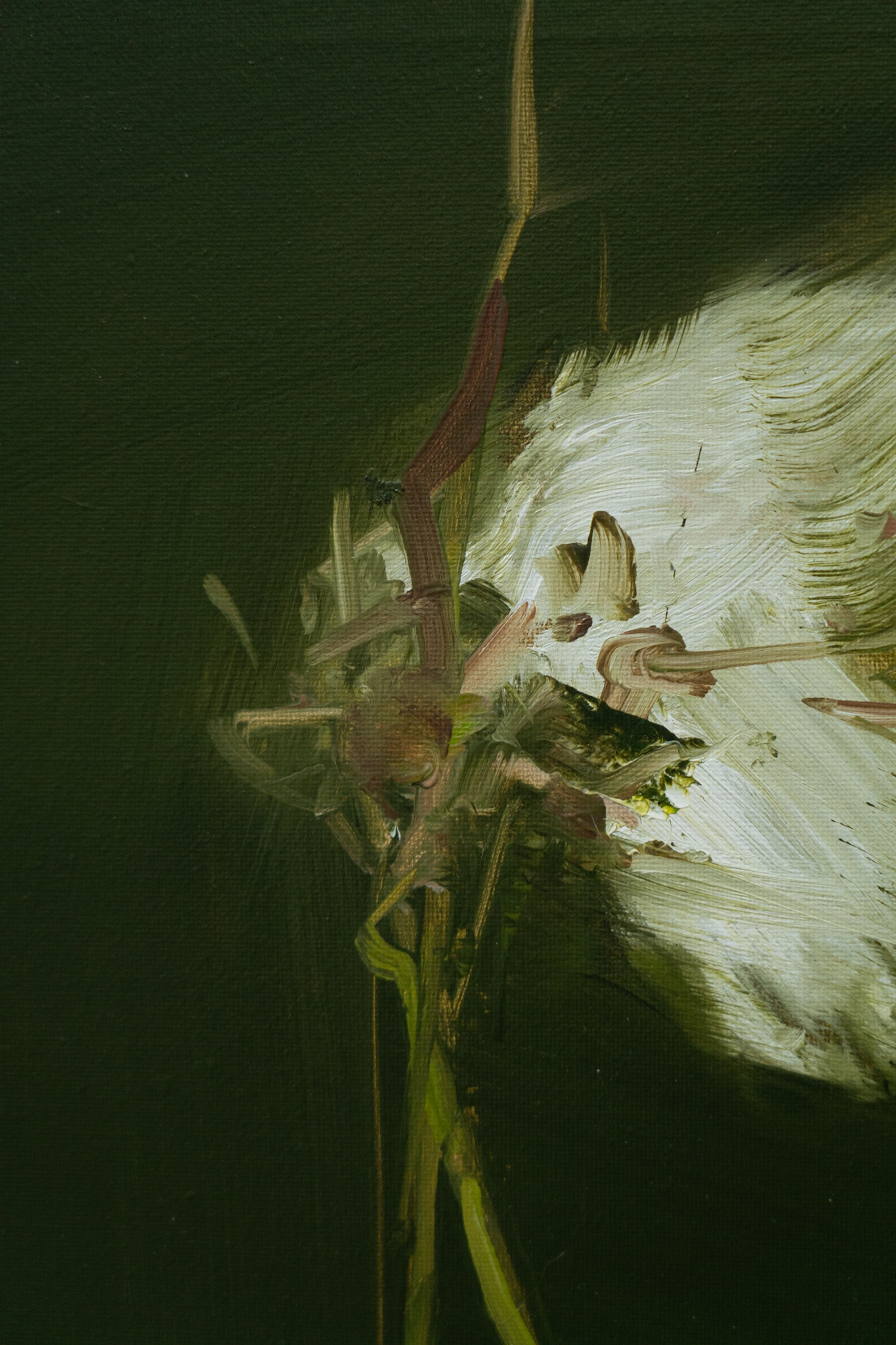 With a deliberate hand, but a stunningly, delicate touch, this extraordinarily competent and self-assured artist, Kaye Maahs, has produced another striking oil painting.