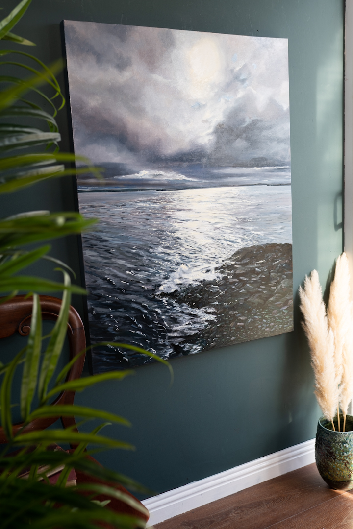 Irish contemporary art – artist signing their work as ‘D’ – West Clare artist – oils on canvas – Original Oil Painting – Morning scene – artists view –
