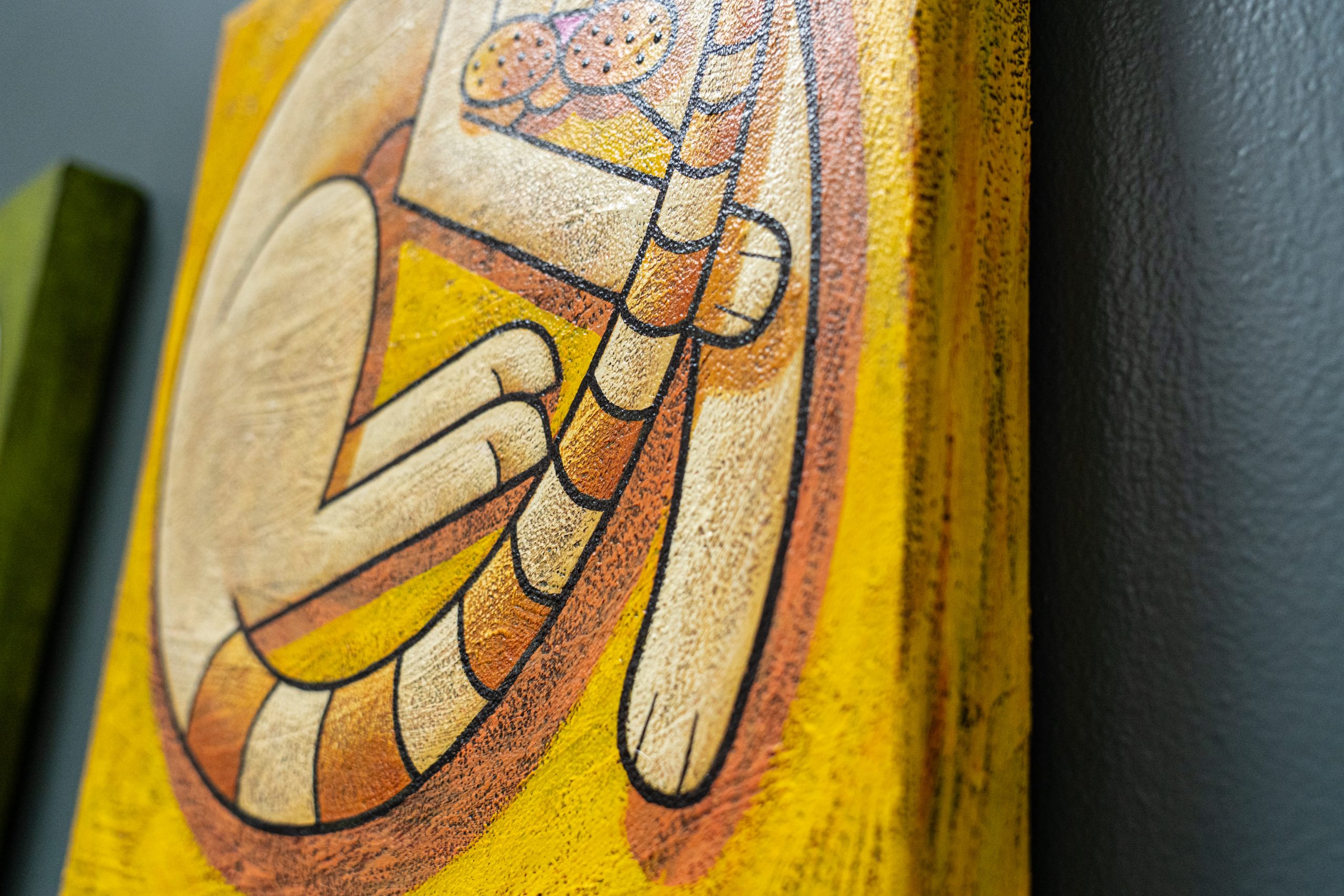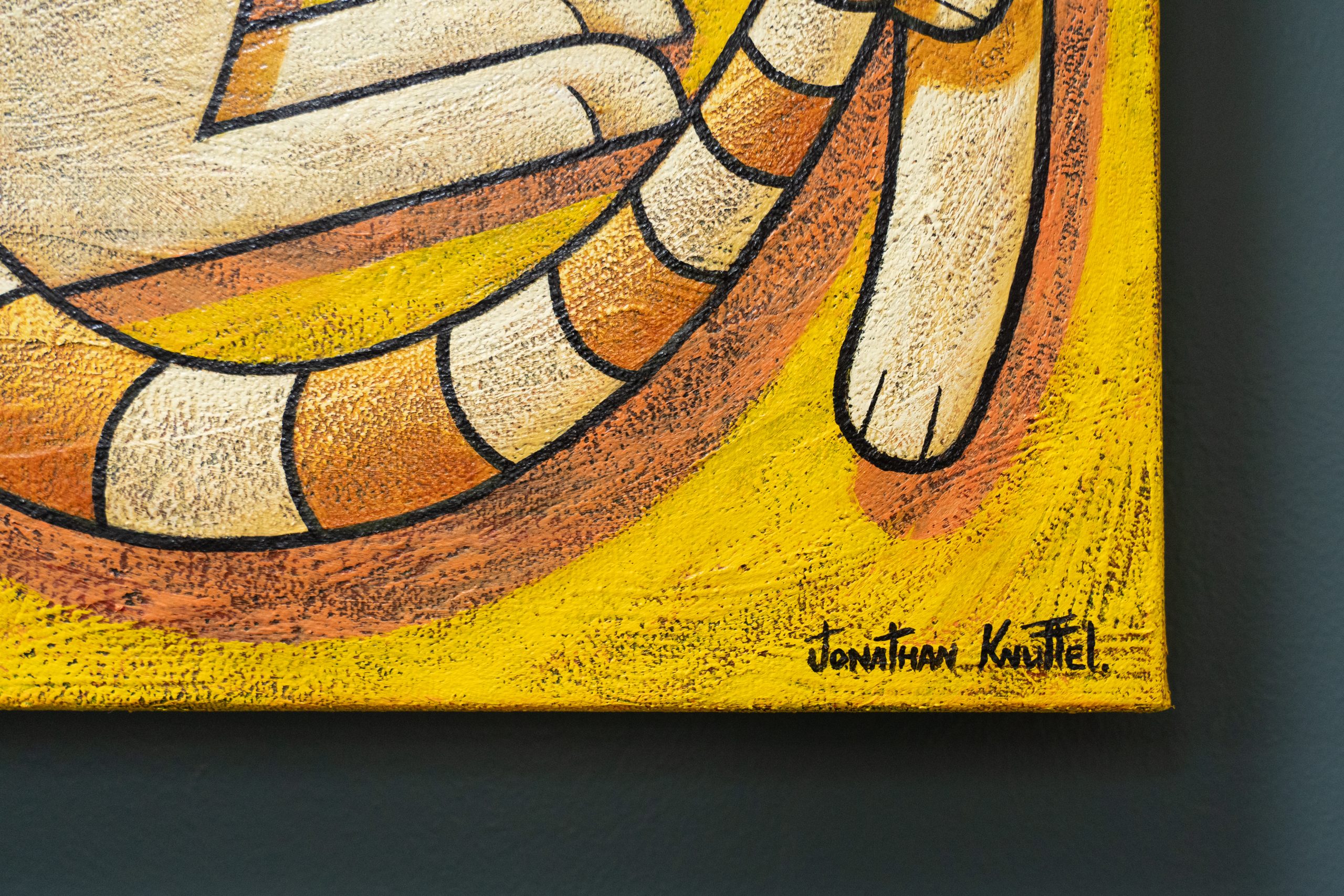 Employing what one might describe as a version of surrealism – Knuttel appears to be challenging the perceptions of reality through the use of exaggerated caricature styles, fun compositions and vivid colours. His original pieces, are distinctive, bright and uplifting.