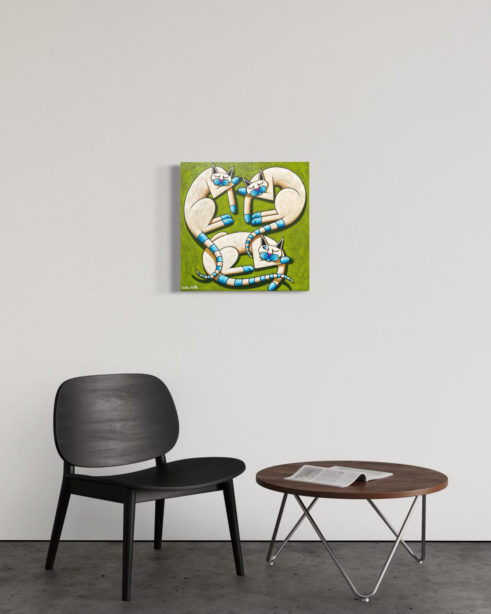 Employing what one might describe as a version of surrealism – Knuttel appears to be challenging the perceptions of reality through the use of exaggerated caricature styles, fun compositions and vivid colours. His original pieces, are distinctive, bright and uplifting.