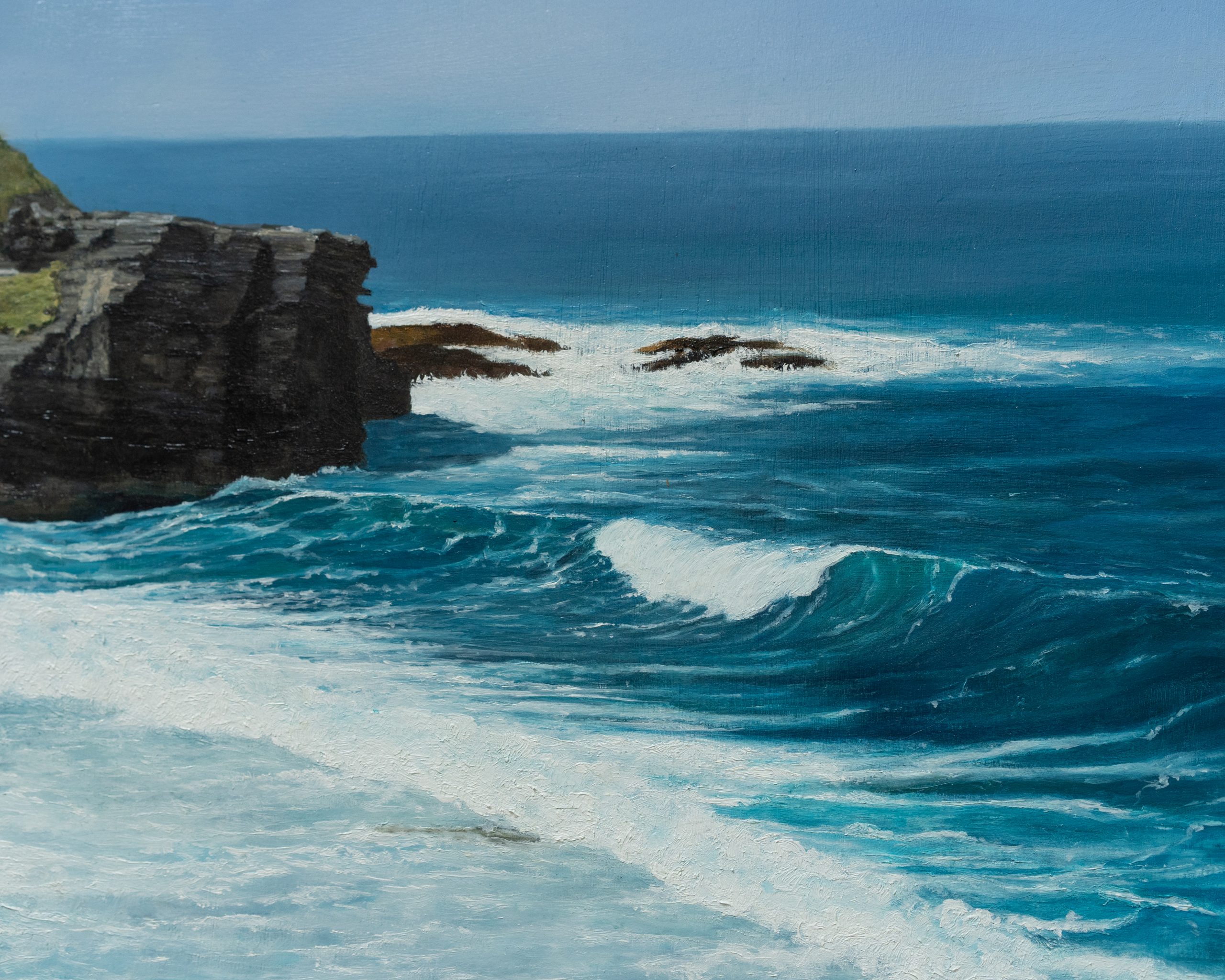 A beautiful and impactful oil painting of a moment on the Cliff Walk, Kilkee.