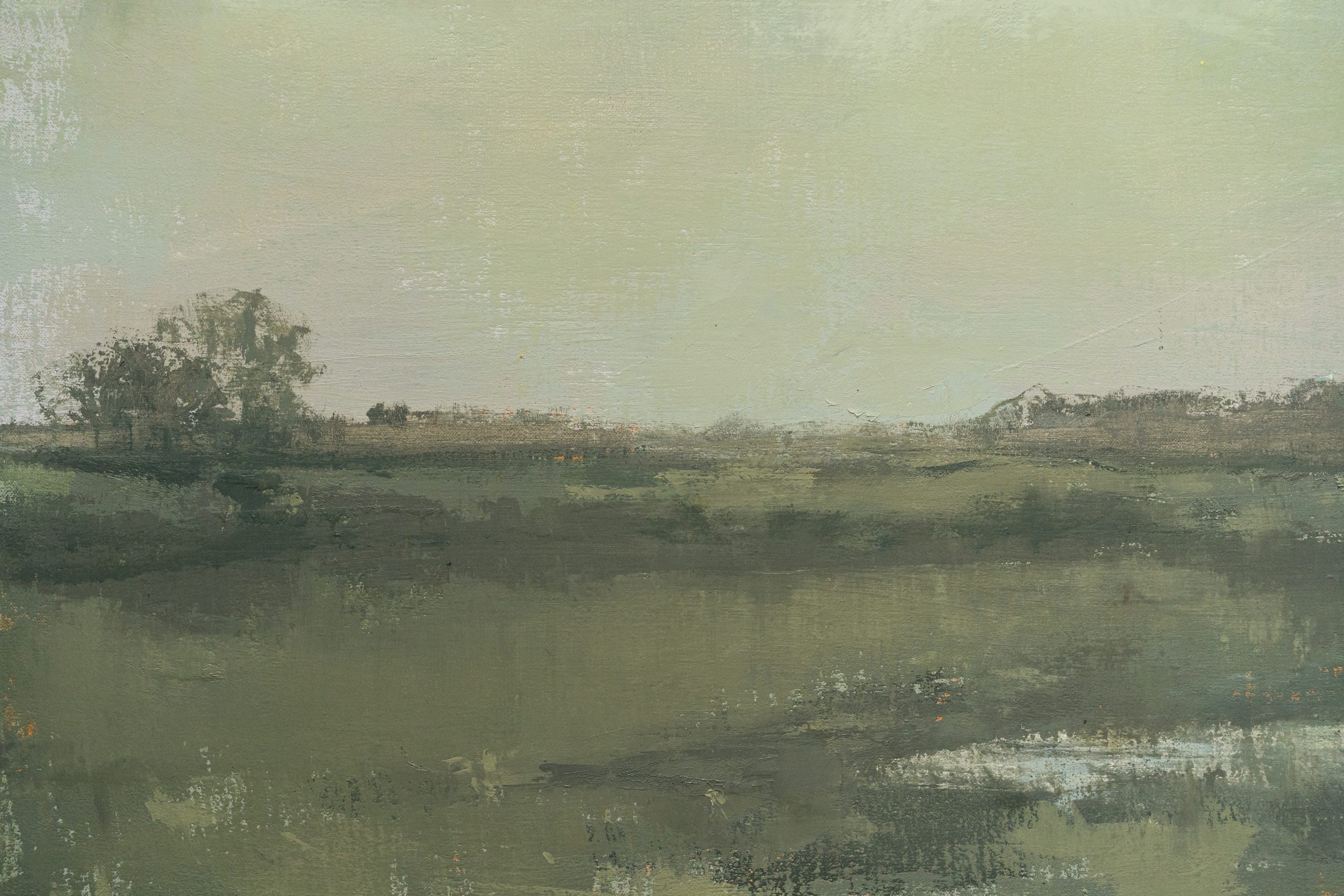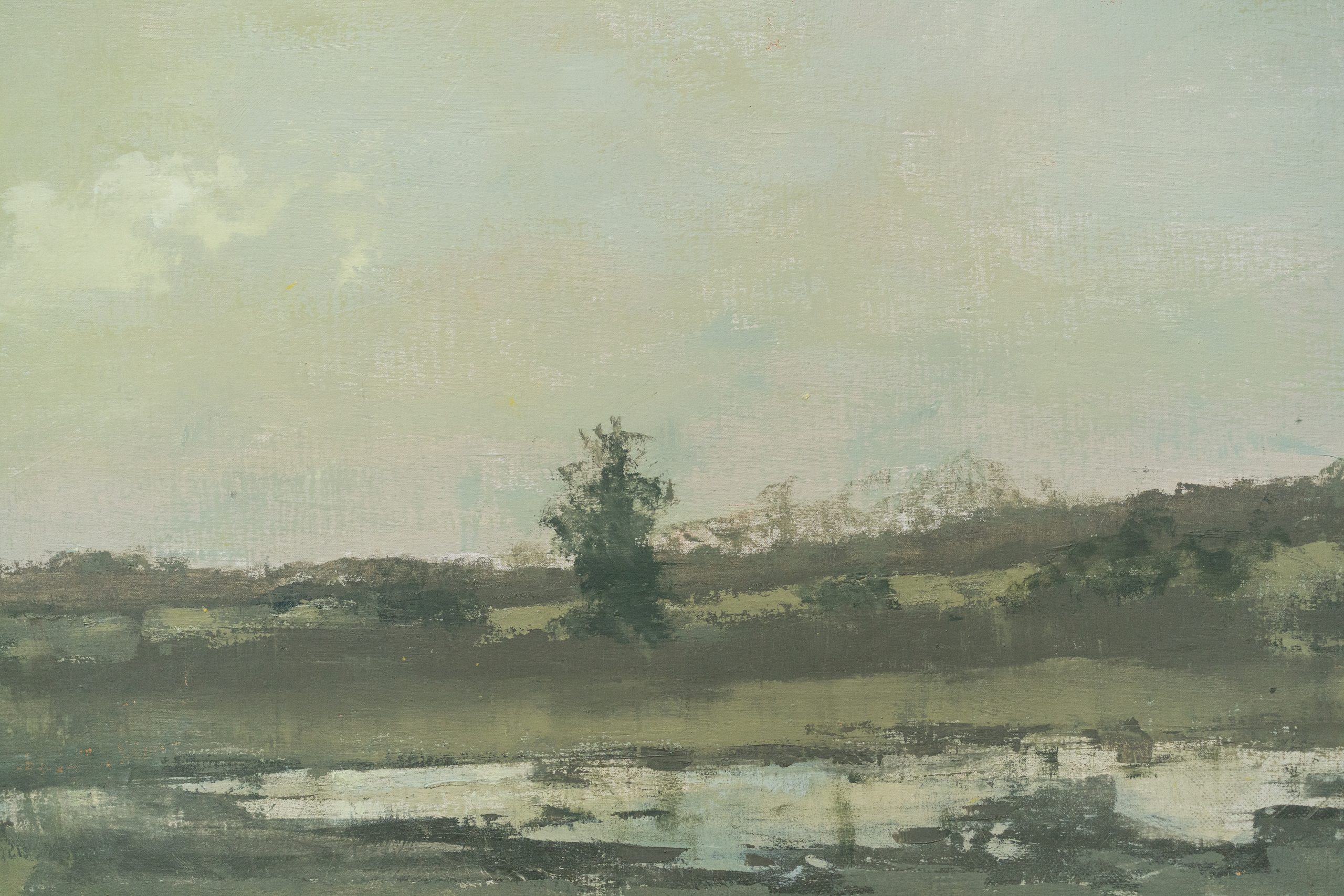 Flooded with Soft Light – is the perfect simple but effective description for this beautiful, large scale, landscape in oils by Dorothy Ledwith.