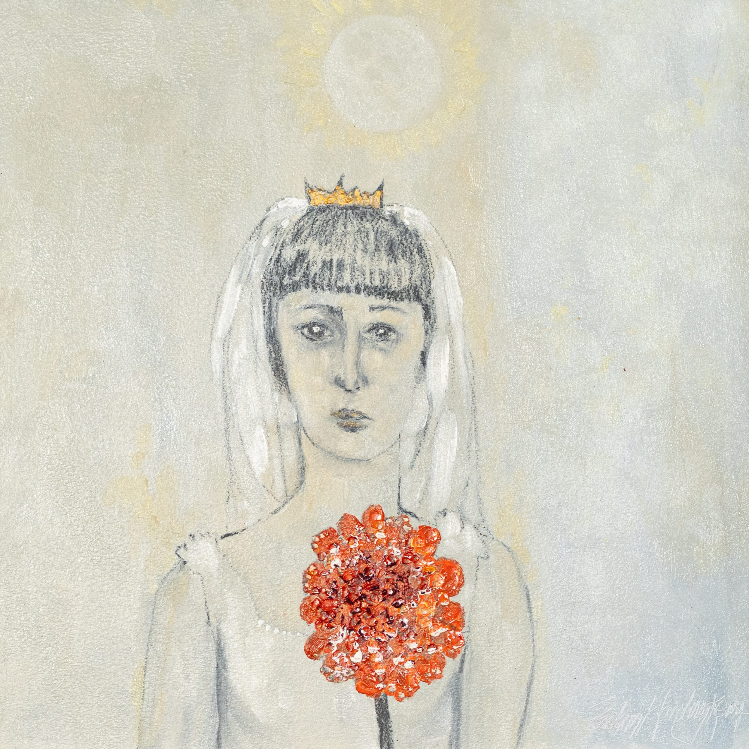 A girl clutching a flower; the meaning of which could be whatever you make it.