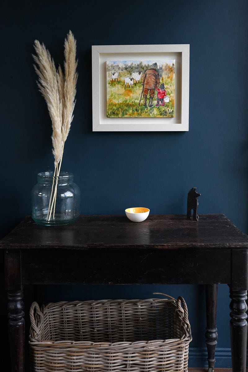 Aideen Monaghan, an artist from the West of Ireland, paints these snapshots in time – thus providing the kind of artwork that becomes of archival importance – what people did, what people wore and how people interacted etc. This particular snapshot ‘Grandad’ (full personal title of Grandad & Freya), highlights the beauty and preciousness of those moments in time.