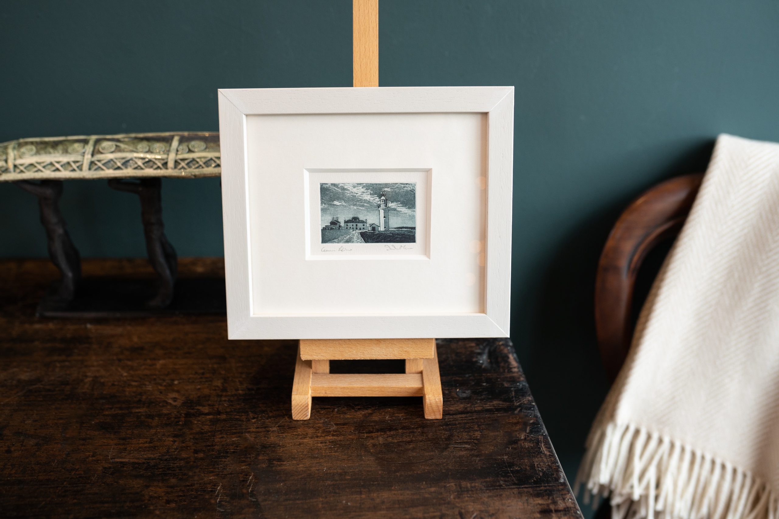Artist Deirdre McKenna has created a series of gorgeous, miniature, hand pulled, etchings of Loop Head Lighthouse. Such a beautiful and interesting, miniature piece of original art to own! Although referred to as a print (because etchings are essentially a reverse print from an etching in metal) each print is actually an original work or art, due to the specialised overall process that goes into achieving each individual result – and also each piece has been hand signed by the artist, mounted and framed – and all for only €70.