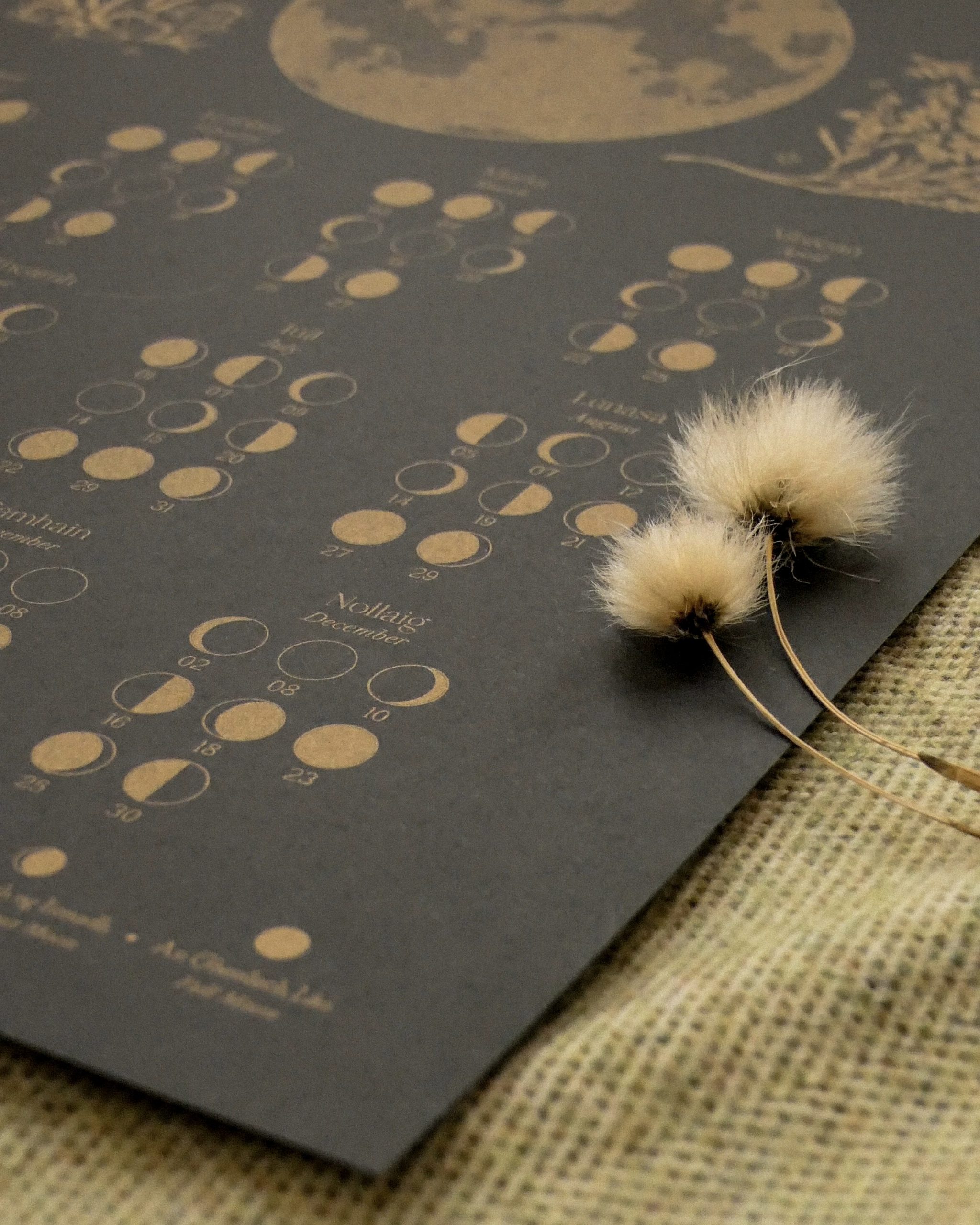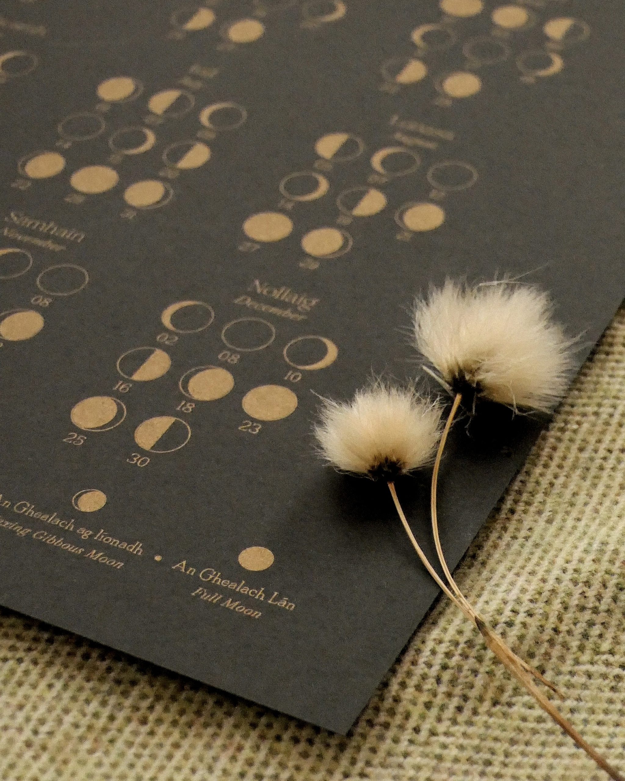 Having this annual calendar on display is a wonderful way to connect with the moon, learn cúpla focal and brighten up your home!
