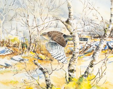 Artist, author and lifelong bird watching / nature consultant Phil Brennan, creates the most beautiful watercolour depictions of the stunning sights and birds that he has witnessed. Not just beautifully detailed, Phil’s knowledge of colour is superb and he always manages to bring such drama into his pieces. Phil has spent much of his life time doing field work in such spots of natural beauty along the Clare Coast and his experts eye for detail is refreshing.Phil’s artwork is detailed and both beautifully and delicately applied. This is a large artwork and is professionally framed behind glass.
