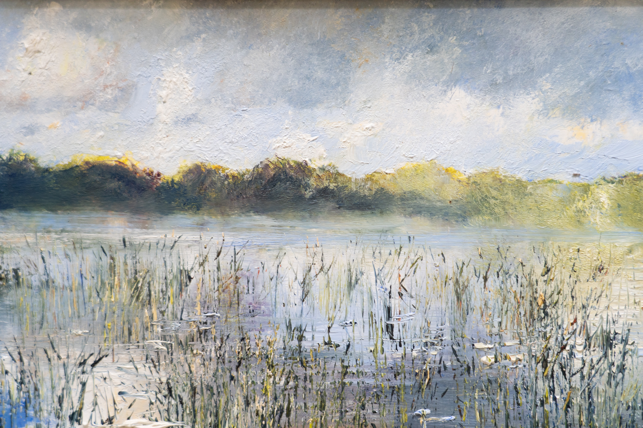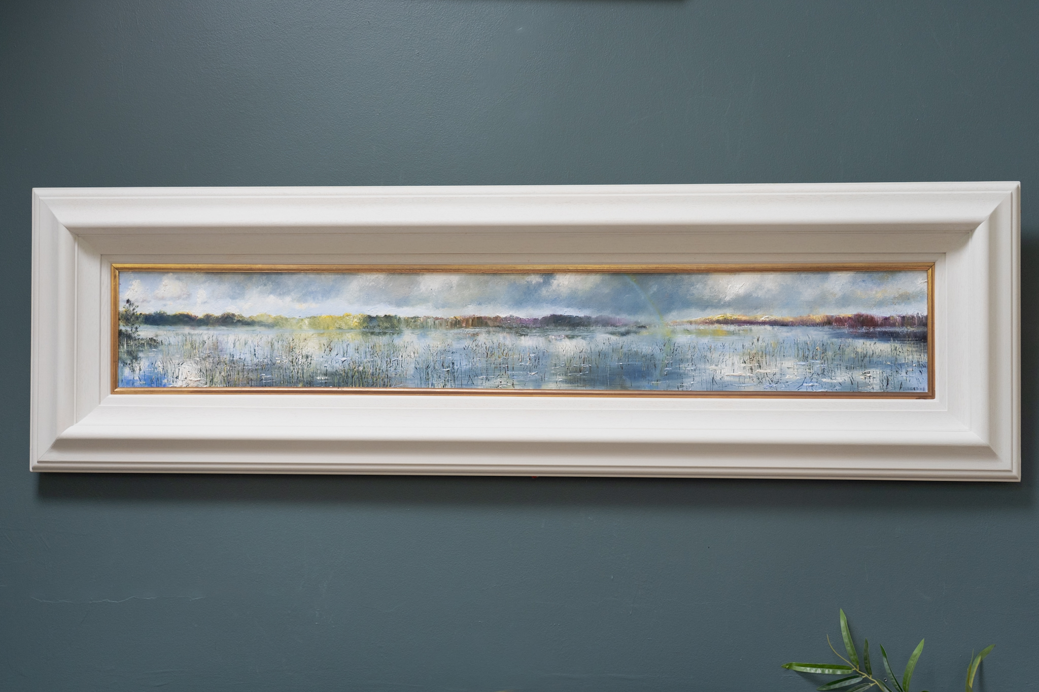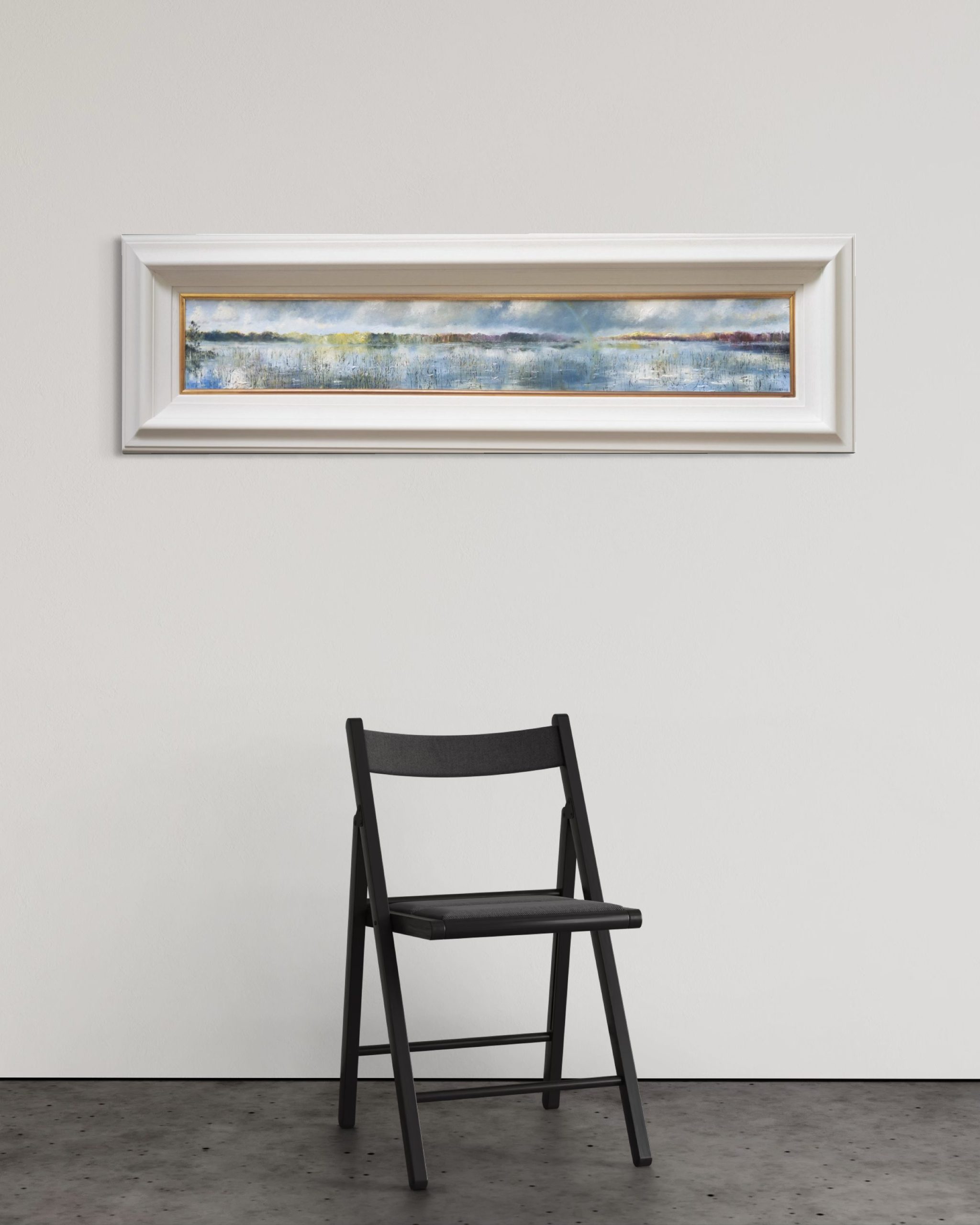 The beautiful, thick layers of oil, that form a part of the incredible journey of a Mark Eldred original, are raised and prominent as each and every element in the painting gets the same attention and the same love from this awesome artist. ‘Rainbow over Muckross Lake’ is another striking Eldred original that quite literally takes your breath away. Majestically framed, this is a large and powerful piece that makes for a very striking addition to any space. This impressive painting, with its gorgeous and rich colour palette and long, landscape shape, really stands out. Like every Mark Eldred piece we have ever been lucky enough to be around, you could almost walk right into it, its so beautifully realistic, with its fabulous detail and uplifting shafts of sunlight.