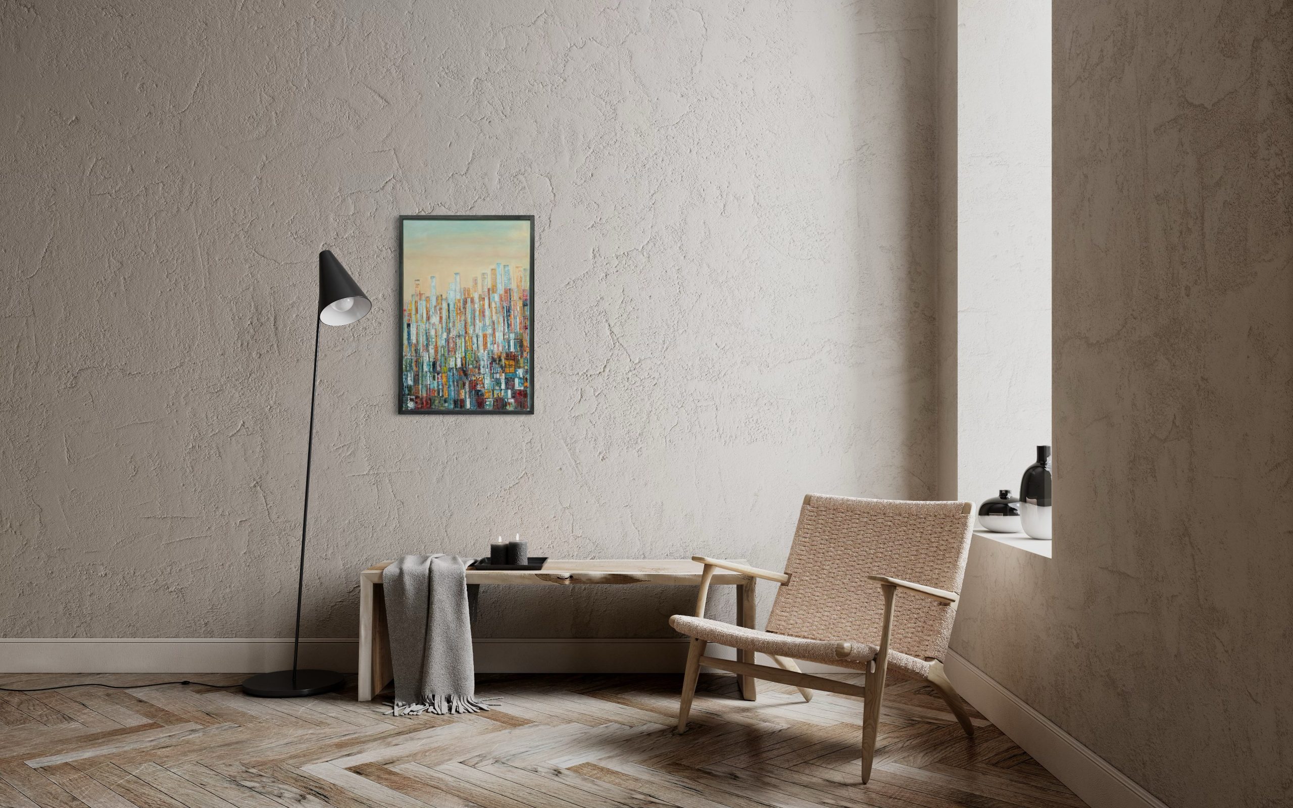 With a strong background in interior design, contemporary artist, Moira Ryan, has brought her innate knowledge of colours and spaces into her gorgeous artworks.