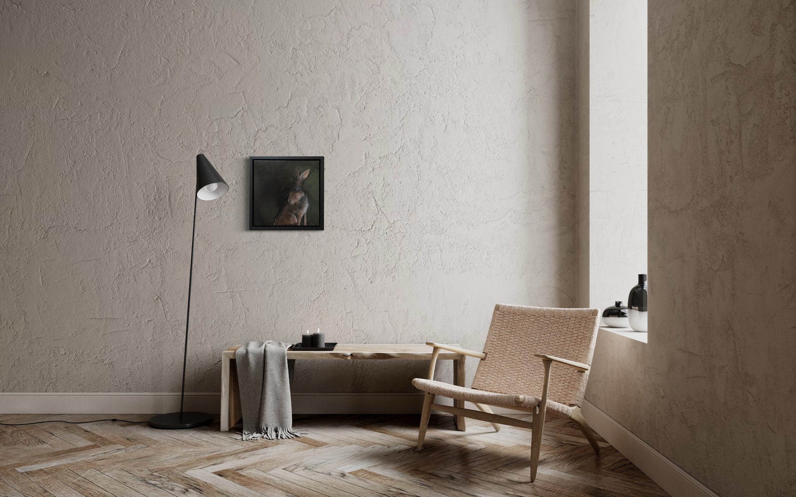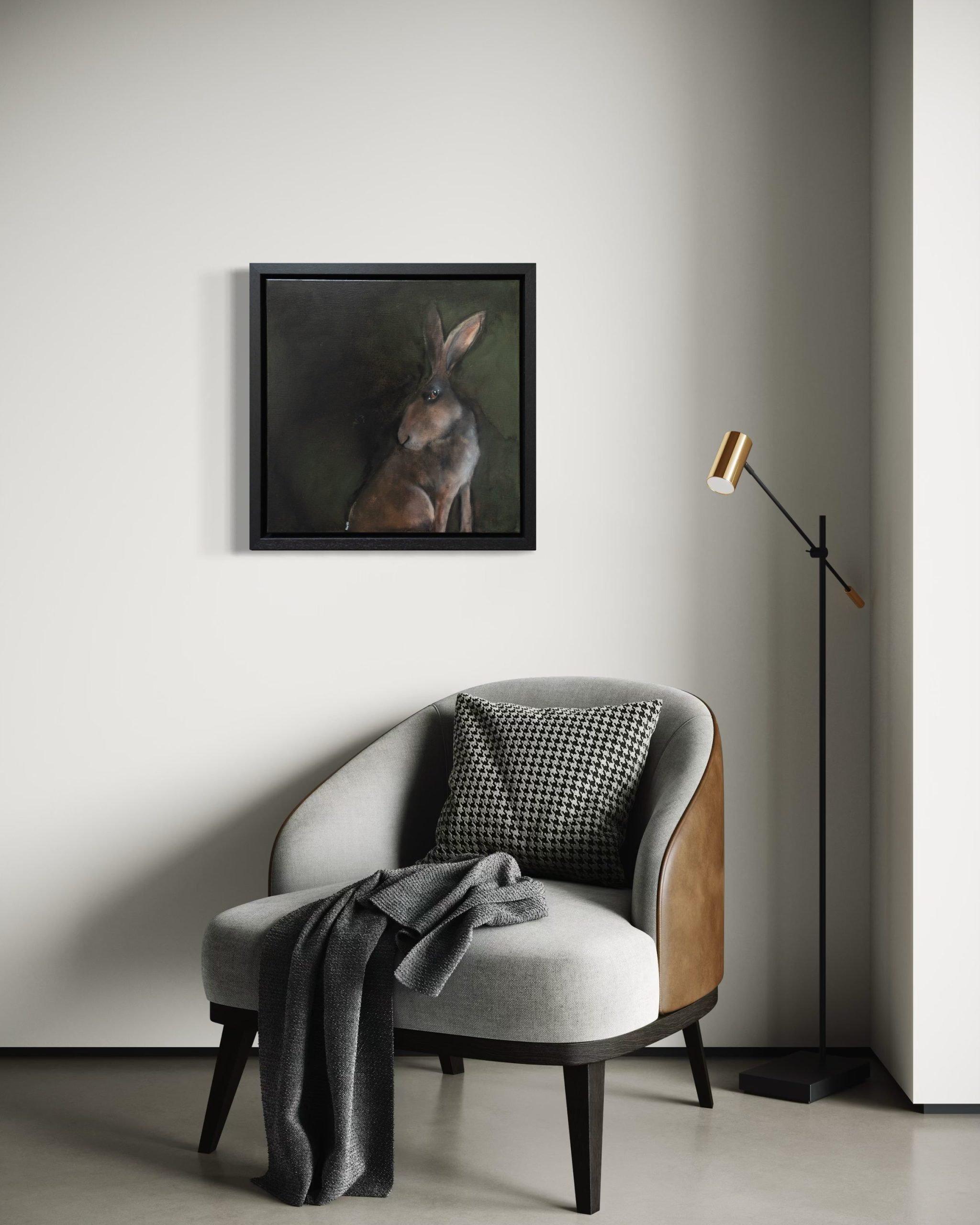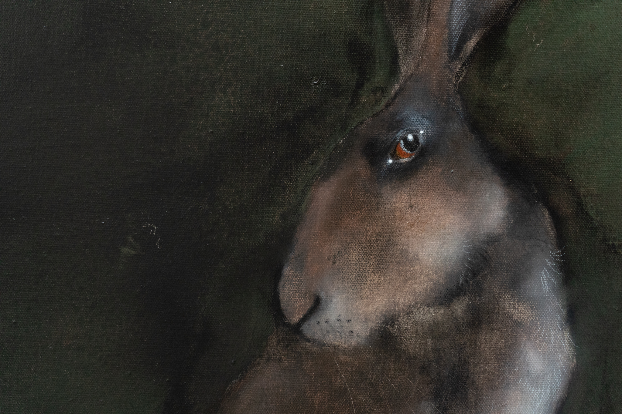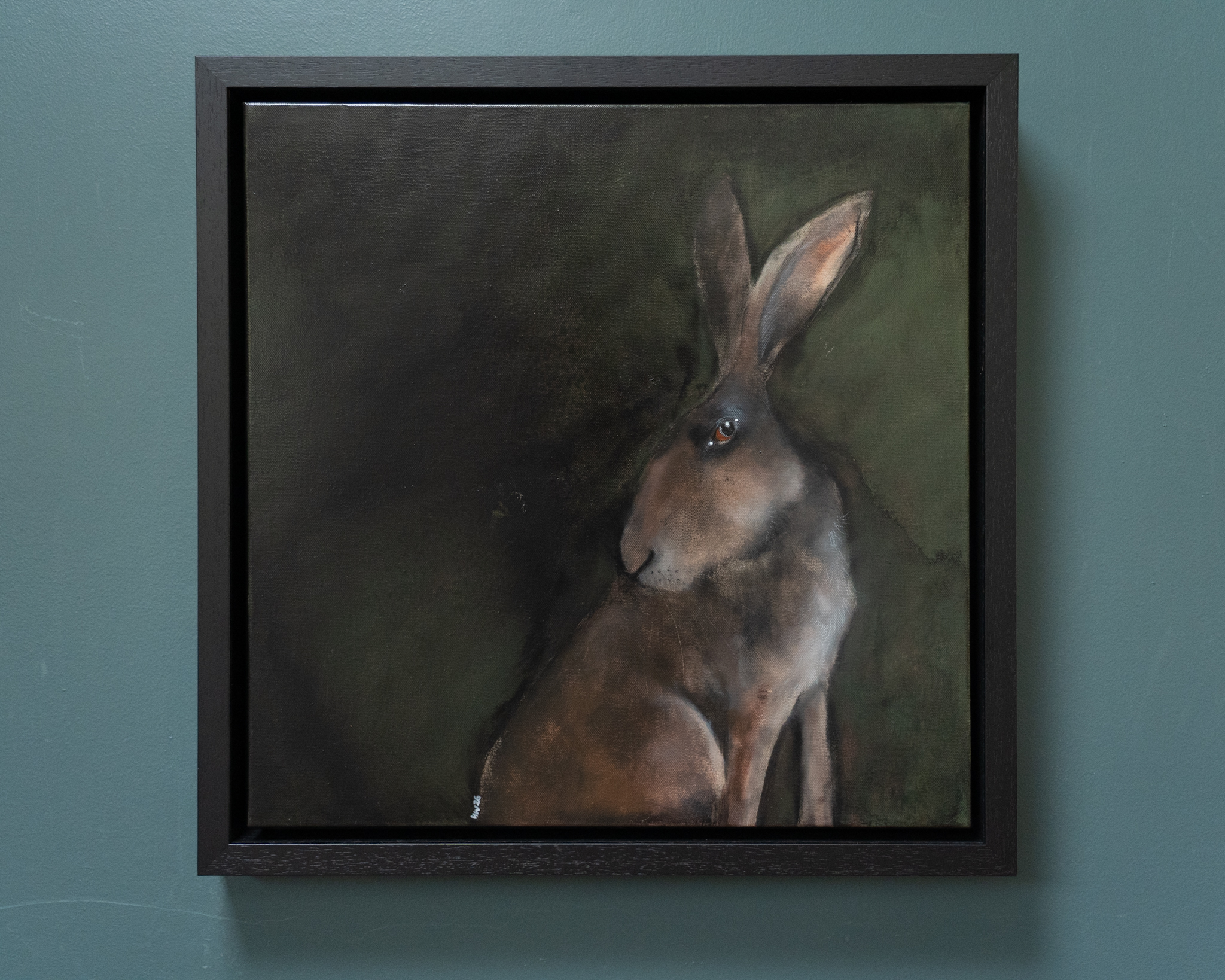 Celebrated artist Heidi Wickham, is renowned for her gorgeous hare paintings. This one is particularly striking against the dark background and his shy title is apt, as he glances cautiously behind him.