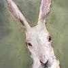 With an adorable, tilted head and rather inquisitive looking face, this white rabbit is painted beautifully in the contemporary, quirky style, that Heidi Wickham has mastered. On a green canvas, Wickham uses pastels and acrylics to paint her animals, whose fabulous expressions, positioning and indeed, beautiful eyes, can go through your very soul. Her paintings certainly make an impact – and in fact, much of her work is selling almost before it makes it to the gallery walls.