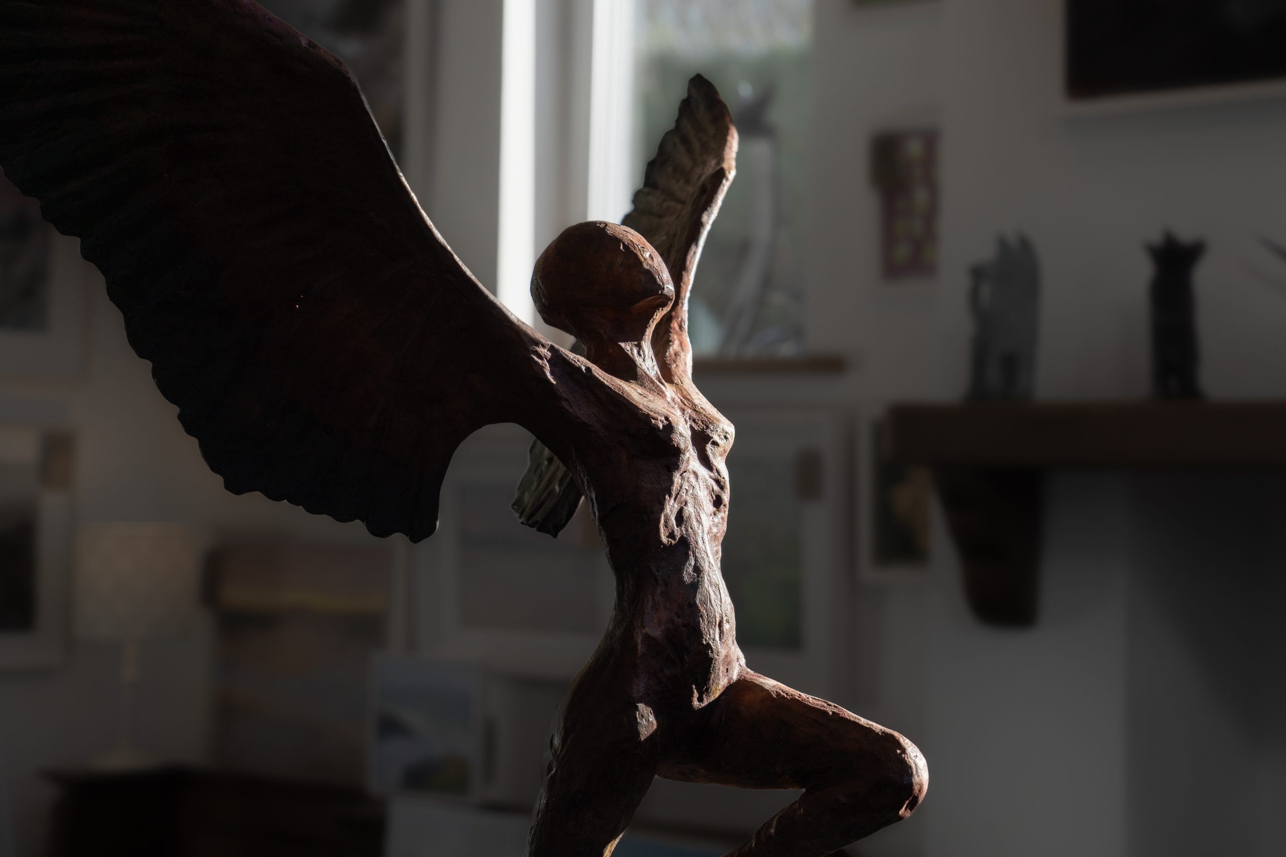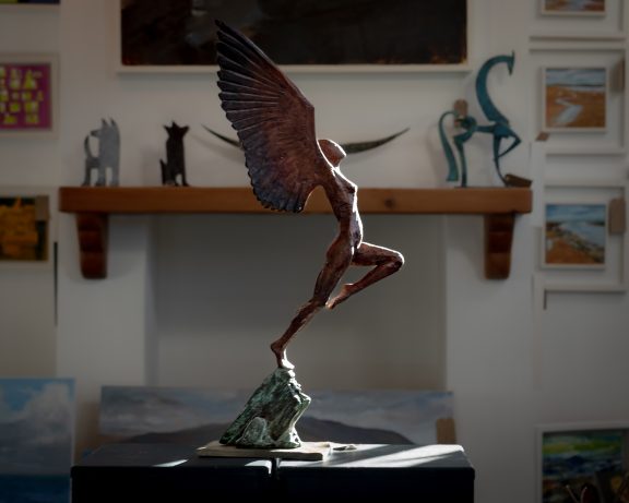 28″(71cm) at tallest point x 12.5″(30cm) side profile x a wingspan of 21.5″(55cm) – bronze sculpture