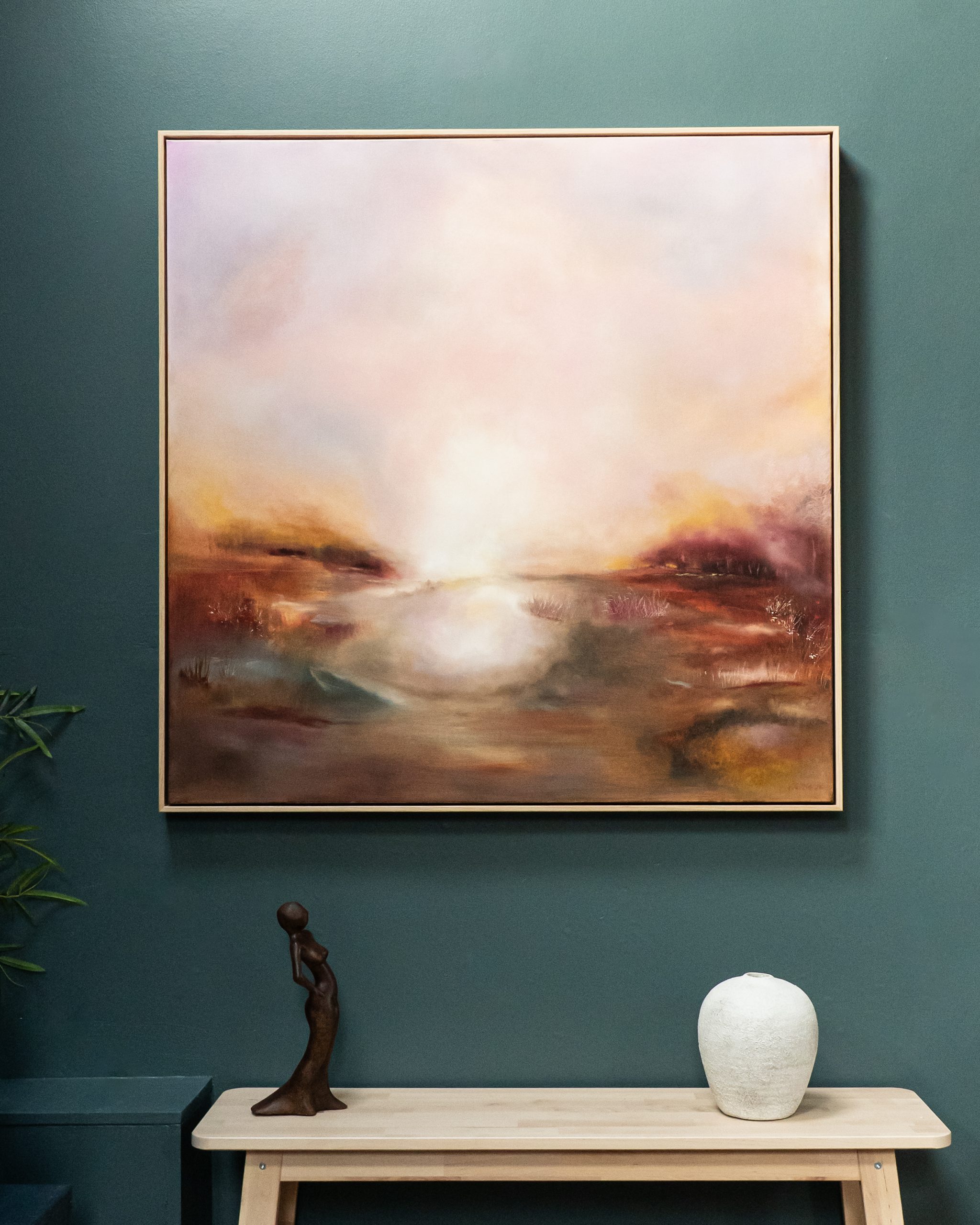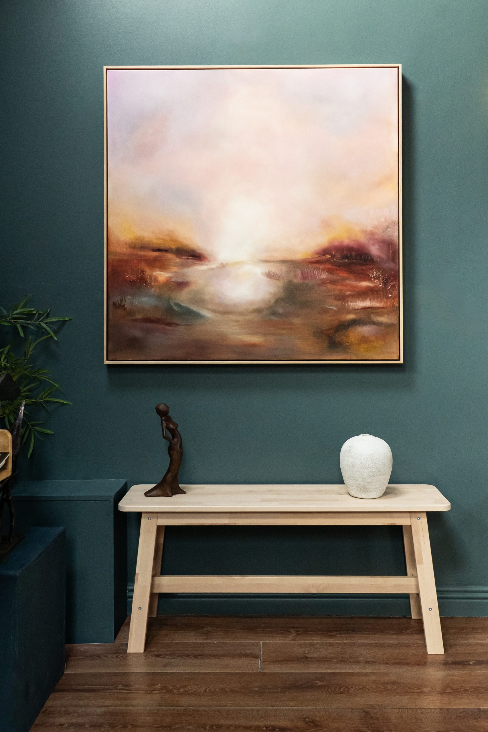 This gorgeous piece of original art, entitled ‘Velvet Dusk’, is both captivating and beautifully calming.  Mary Rose manages to achieve an ethereal, almost spiritual, sense, through her art and is fascinated by how a piece can impact the physical space it hangs in – and she uses everything in her artistic being to ensure that each pieces stirs something within the viewer; be it a feeling, a sentiment or an emotion.  Mary Rose Keane, is a contemporary artist, whose work has not only begun gaining much traction amongst lovers of art, but also has been making waves in the world of interior design.