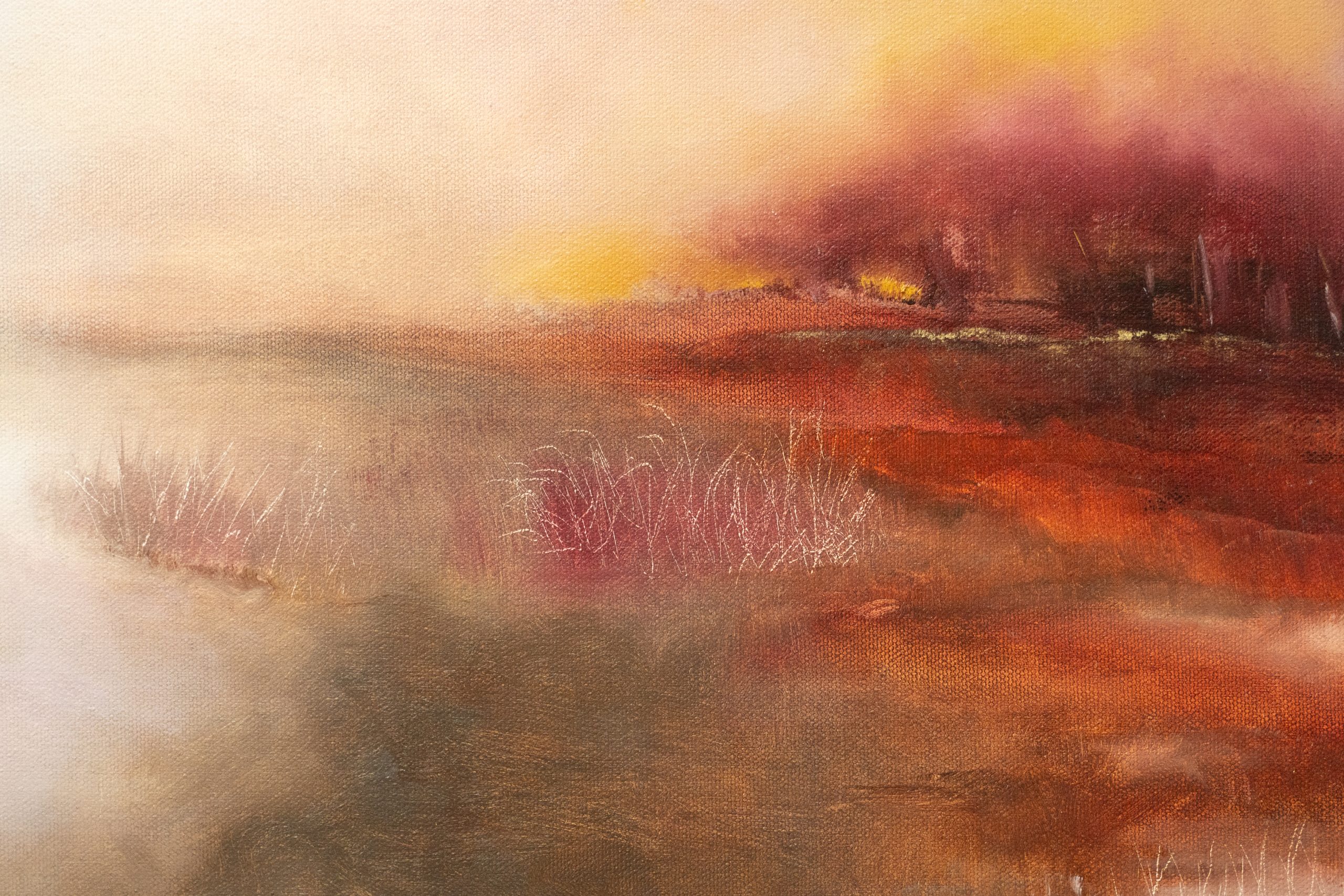 What a beautiful, serene landscape, that Mary Rose has captured here in oils; the light from which emanates off this piece of art as though it were the sun itself.