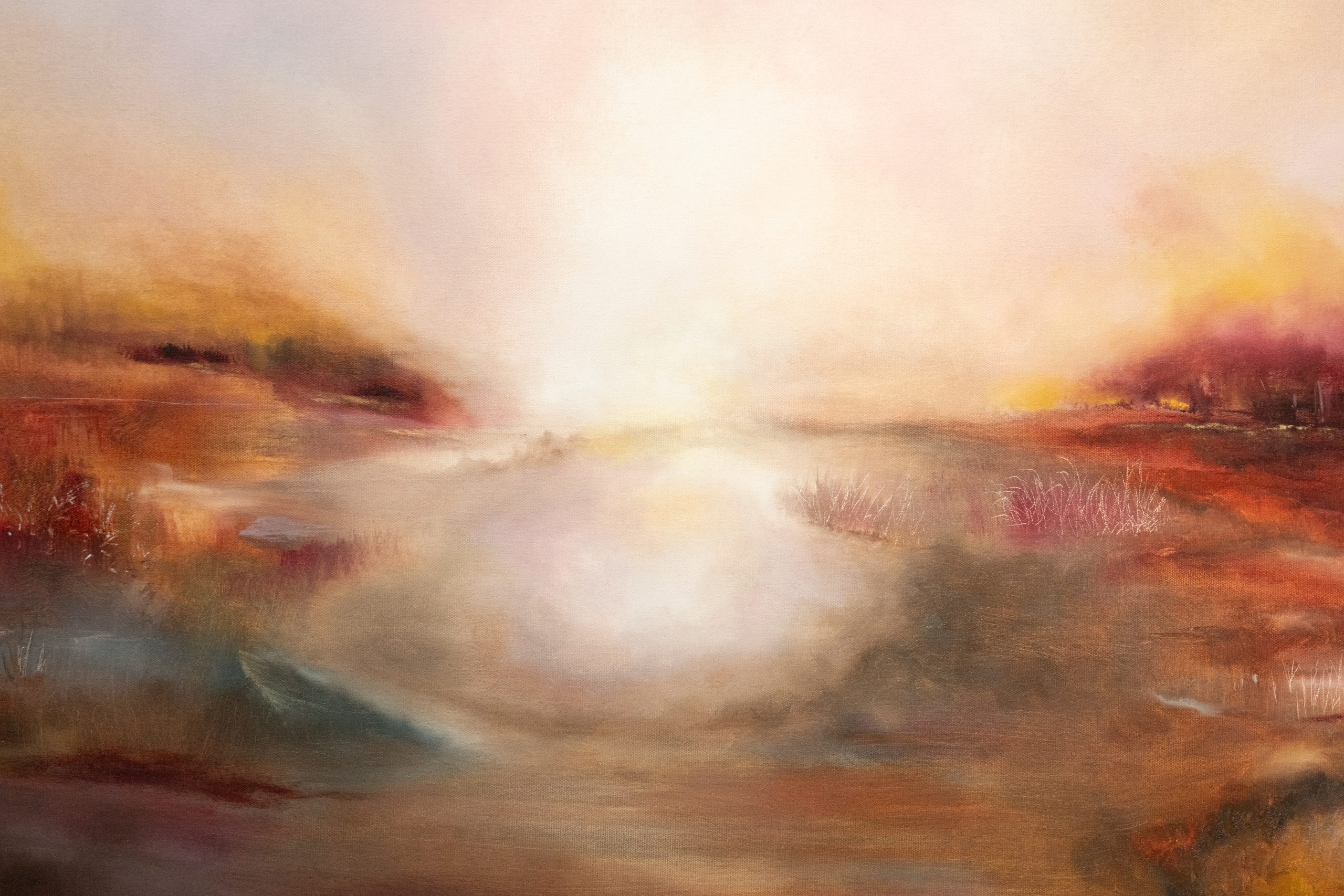 The light and warmth of this large metre x metre piece of original art by contemporary artist Mary Rose Keane is quite extraordinary.